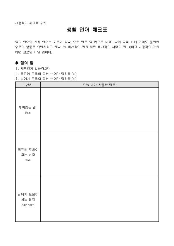 »ýȰ ¾ð¾î üũǥÀÔ´Ï´Ù. ¾ð¾î¿¡ µû¶ó¼ ´ëÀΰü°è°¡ ´Þ¶óÁú Á¤µµ·Î Áß¿äÇÕ´Ï´Ù. ÀÌ¿¡ ´ëÇÑ Àç¹ÌÀÖ´Â ¸»°í ÇØ¼´Â ¾ÈµÇ´Â ¸»À» ½º½º·Î Àû¾îº¸¾Æ ÀÚ½ÅÀÇ »ýȰ¾ð¾î¸¦ Ã¼Å©ÇØ º¸´Â ¼½ÄÀÔ´Ï´Ù. |