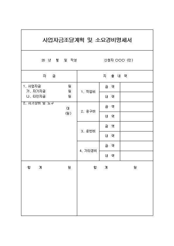 »ç¾÷ÀÚ±ÝÁ¶´Þ°èȹ¹×¼Ò¿ä°æºñ¸í¼¼¼(±âº»¾ç½Ä) |