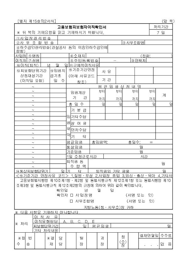 °í¿ëº¸Çè ÇǺ¸ÇèÀÚ ÀÌÁ÷È®Àμ(Á¦15È£ÀÇ2)(2004.01.08 °³Á¤) |