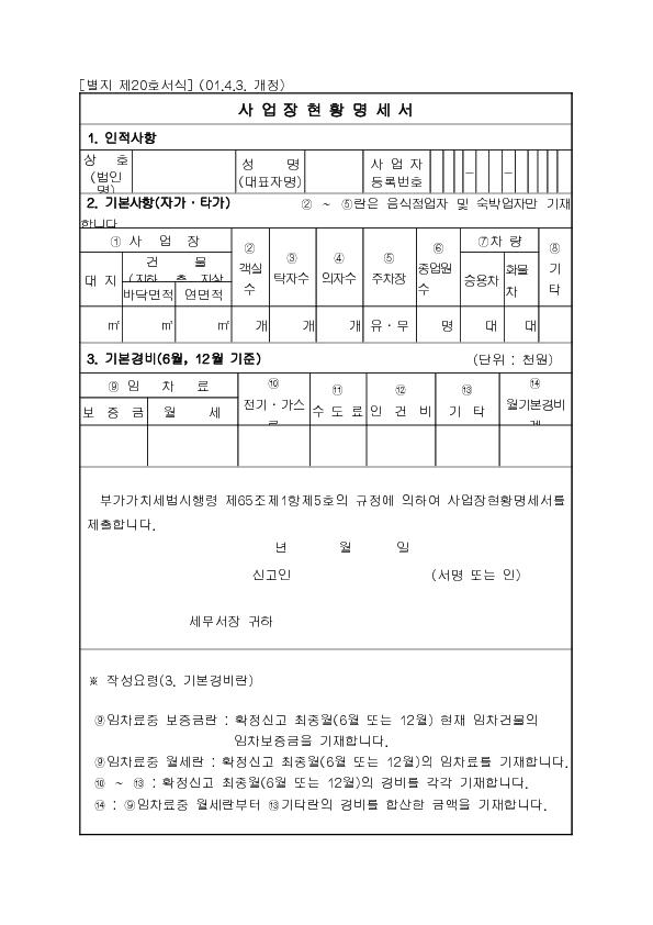 Á¦20È£ »ç¾÷ÀåÇöȲ¸í¼¼¼(2001.4.3. °³Á¤) |