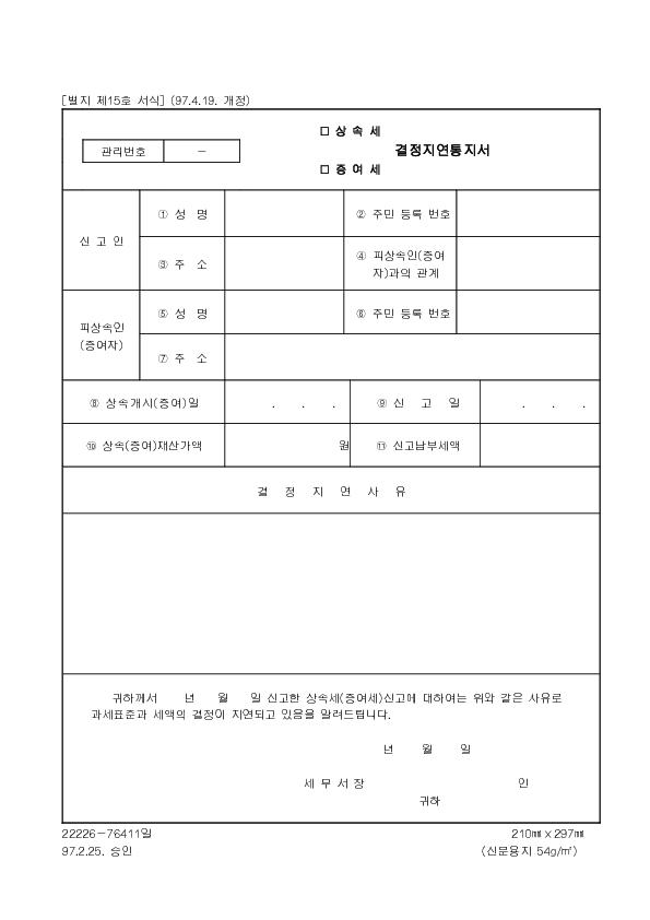 Á¦15È£ »ó¼Ó¼¼.Áõ¿©¼¼°áÁ¤Áö¿¬ÅëÁö¼(1997.4.19. °³Á¤) |