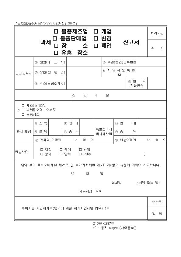 °ú¼¼(¹°Ç°Á¦Á¶¾÷¡¤¹°Ç°ÆÇ¸Å¾÷, Àå¼Ò, À¯ÈïÀå¼Ò)(°³¾÷, º¯°æ, Æó¾÷)½Å°í¼ |