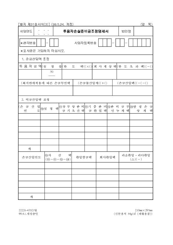Á¦31È£(3)ÅõÀ¶ÀÚ¼Õ½ÇÁغñ±ÝÁ¶Á¤¸í¼¼¼(1999.5.24. °³Á¤) |