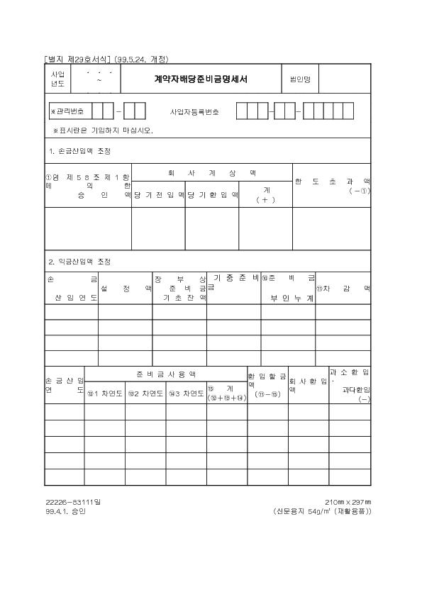 Á¦29È£ °è¾àÀÚ¹è´çÁغñ±Ý¸í¼¼¼(1999.5.24. °³Á¤) |