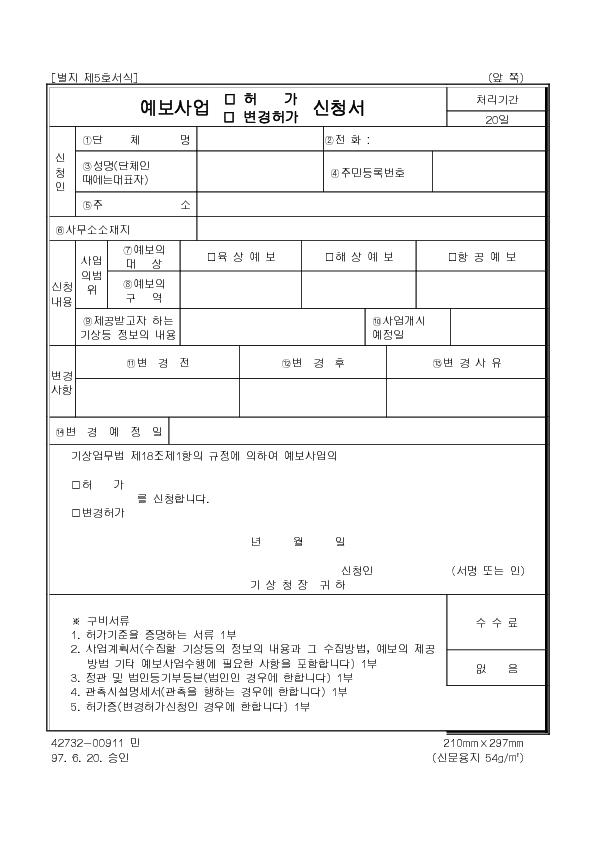 ¿¹º¸»ç¾÷ Çã°¡(º¯°æÇã°¡) ½Åû¼ |