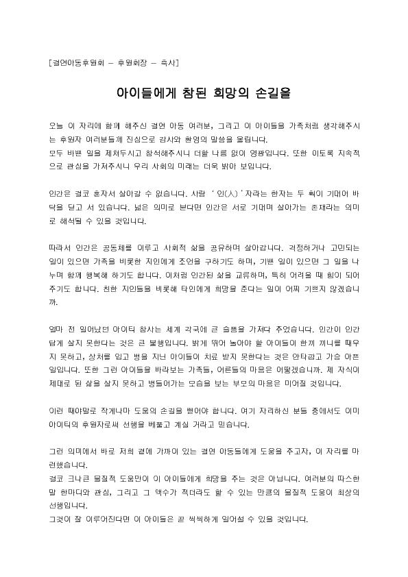 Ãà»ç´ÜüÀå±âŸÃà»ç°á¿¬¾Æµ¿ÈÄ¿øÈ¸¿¡¼ÈÄ¿øÈ¸ÀåÀÇÃàÇÏ |