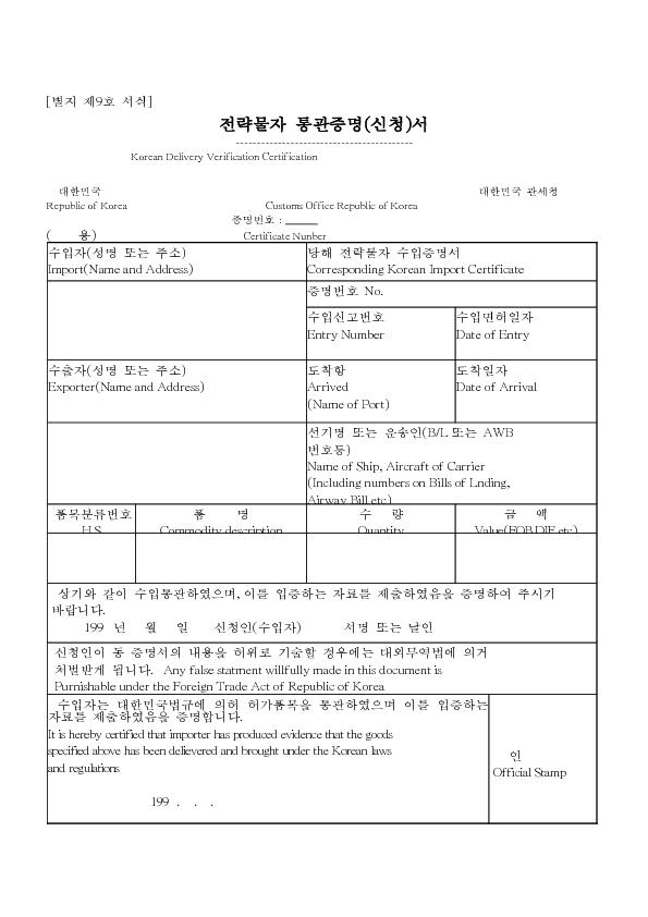 Àü·«¹°ÀÚ Åë°üÁõ¸í(½Åû)¼ |