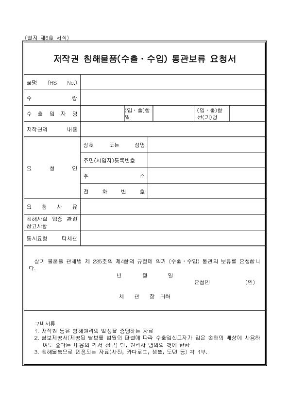 ÀúÀÛ±ÇÄ§ÇØ¹°Ç°(¼öÃâ, ¼öÀÔ)Åë°üº¸·ù¿äû¼ |