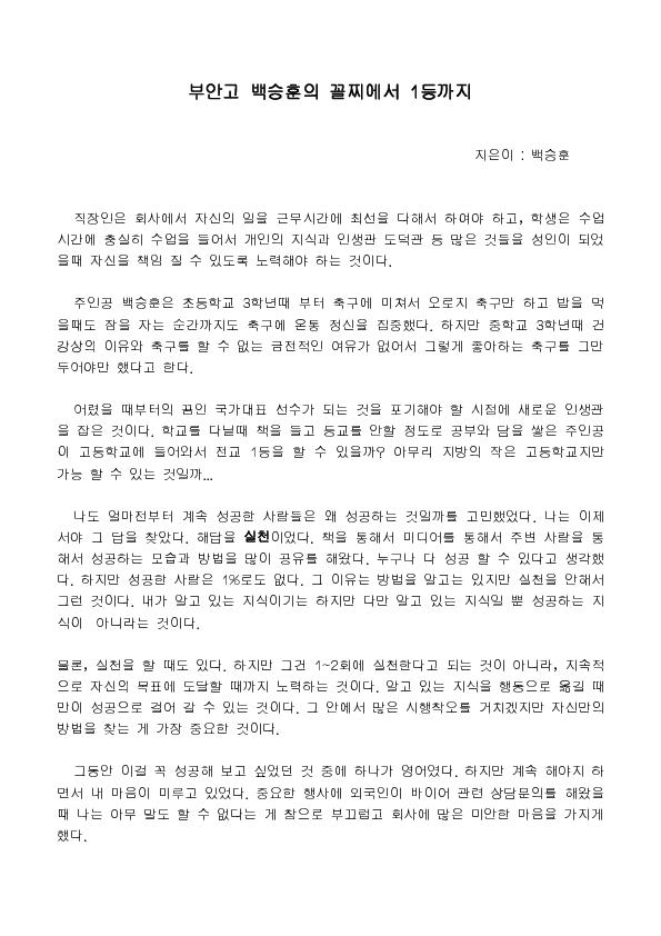 ºÎ¾È°í ¹é½ÂÈÆÀÇ ²ÃÂî¿¡¼ 1µî±îÁö |