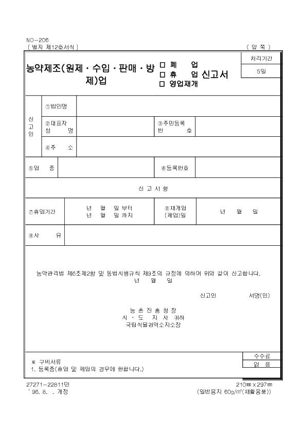 ³ó¾àÁ¦Á¶(¿øÁ¦, ¼öÀÔ, ÆÇ¸Å, ¹æÁ¦)¾÷(Æó¾÷, ÈÞ¾÷, ¿µ¾÷Àç°³)½Å°í¼ |
