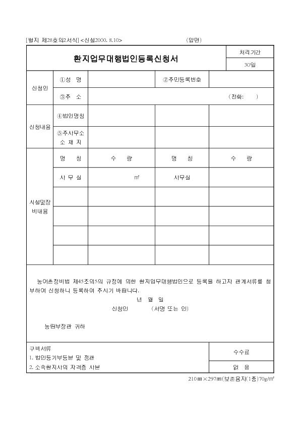 ȯÁö¾÷¹«´ëÇà¹ýÀεî·ÏÁõ±³ºÎ(º°Áö Á¦28È£ÀÇ2¼½Ä) |