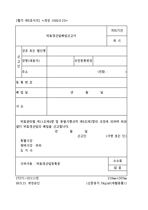 ºñ·á»ý»ê¾÷Æó¾÷½Å°í¼ÀÔ´Ï´Ù. |