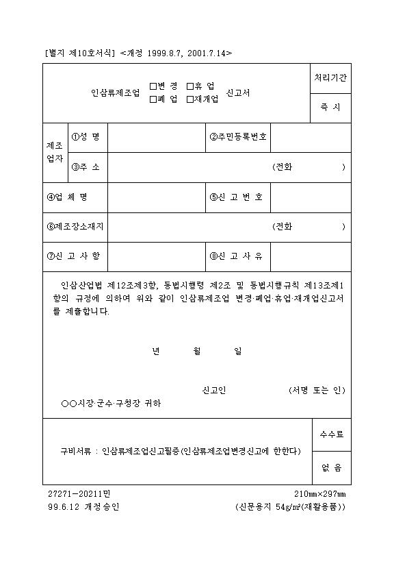 ÀλïÁ¦Á¶¾÷(º¯°æ,ÈÞ¾÷,Æó¾÷,Àç°³¾÷)½Å°í¼ |