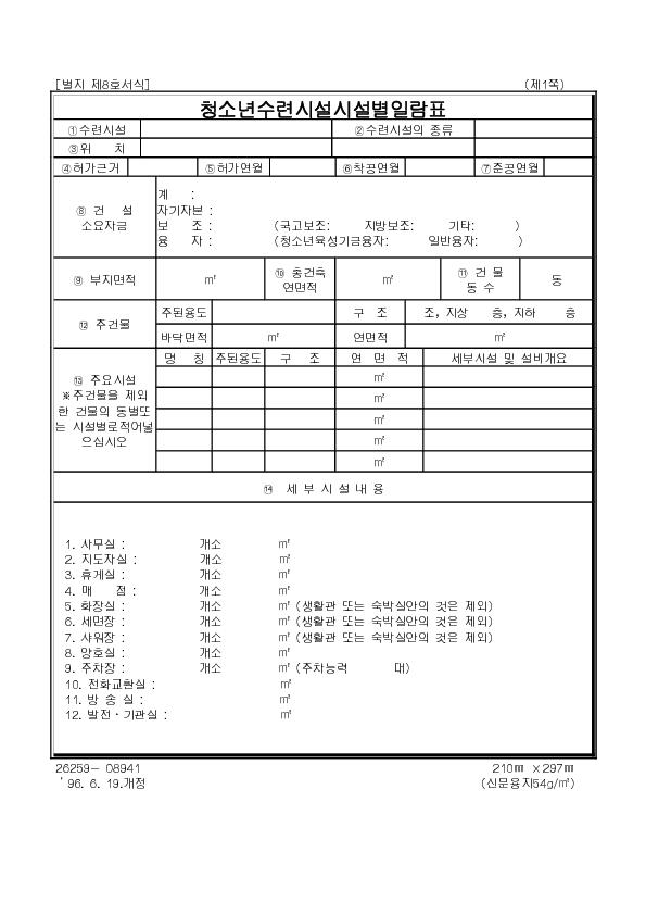 û¼Ò³â ¼ö·Ã½Ã¼³ ½Ã¼³º°À϶÷Ç¥ |