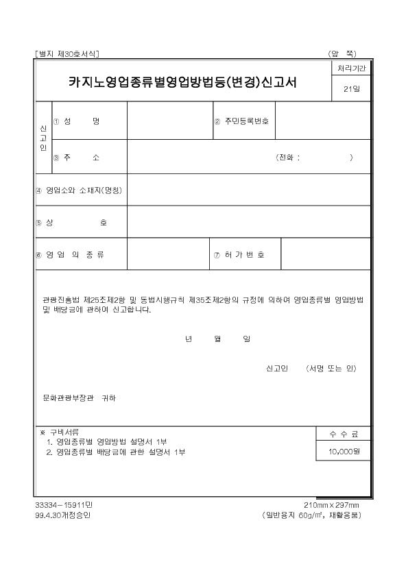 Ä«Áö³ë¿µ¾÷ Á¾·ùº° ¿µ¾÷¹æ¹ý µî(º¯°æ) ½Å°í¼ |