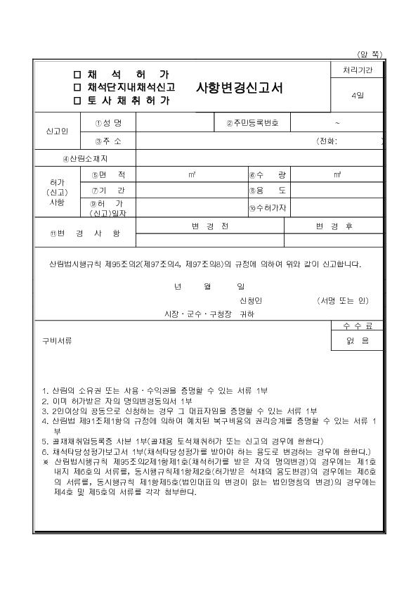 (ä¼®Çã°¡, ä¼®´ÜÁö³»Ã¤¼®½Å°í, Åä»çäÃëÇã°¡)»çÇ׺¯°æ½Å°í¼ |