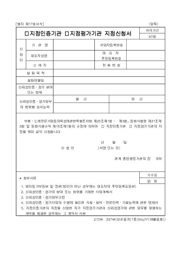 ¼Ò°³±Û (ÁöÁ¤ÀÎÁõ±â°ü, ÁöÁ¤Æò°¡±â°ü)ÁöÁ¤½Åû¼­(º°Áö Á¦17È£¼­½Ä)