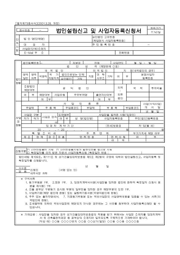 ¹ýÀμ³¸³½Å°í ¹× »ç¾÷ÀÚµî·Ï½Åû¼ |