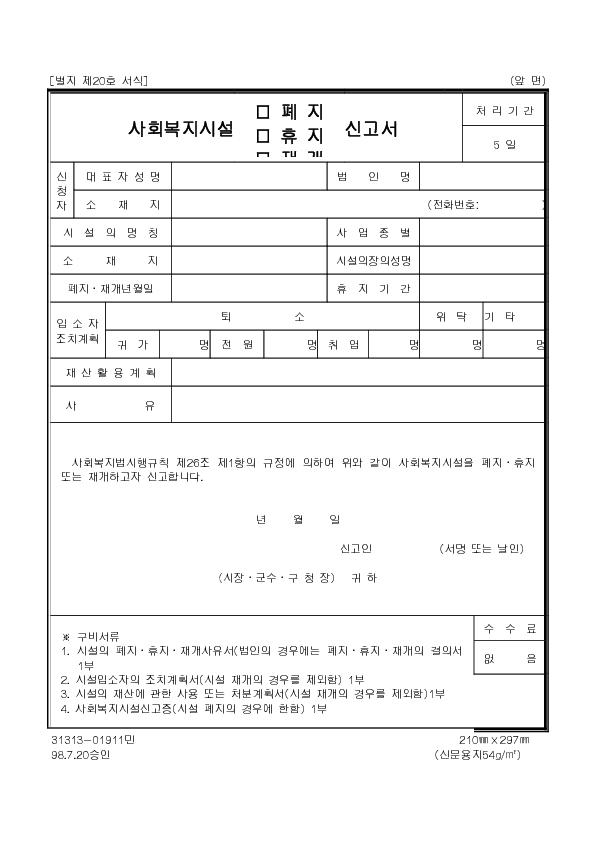 »çȸº¹Áö½Ã¼³ÆóÁö, ÈÞÁö, Àç°³½Å°í¼ |