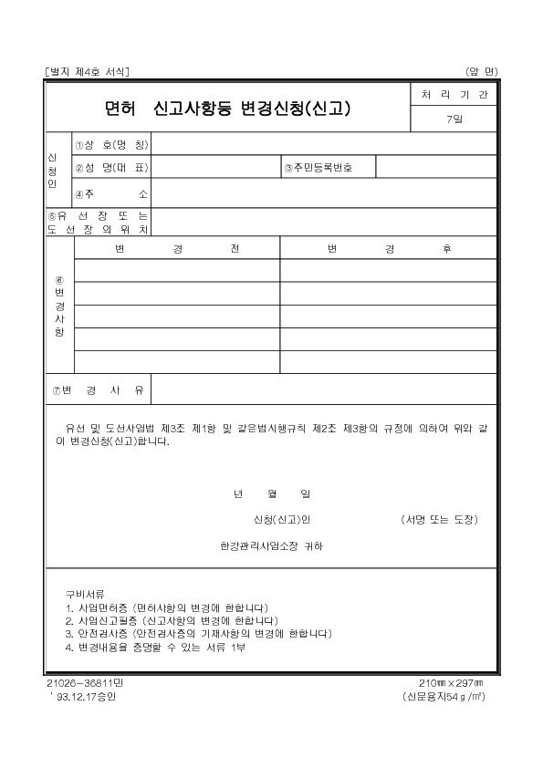 À¯¼± ¹× µµ¼±»ç¾÷¸éÇã, ½Å°í»çÇ׺¯°æ½Åû¼ |