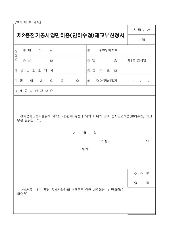 Á¦2Á¾Àü±â °ø»ç¾÷ ¸éÇãÁõ(¸éÇã¼öø) Àç±³ºÎ ½Åû¼ |