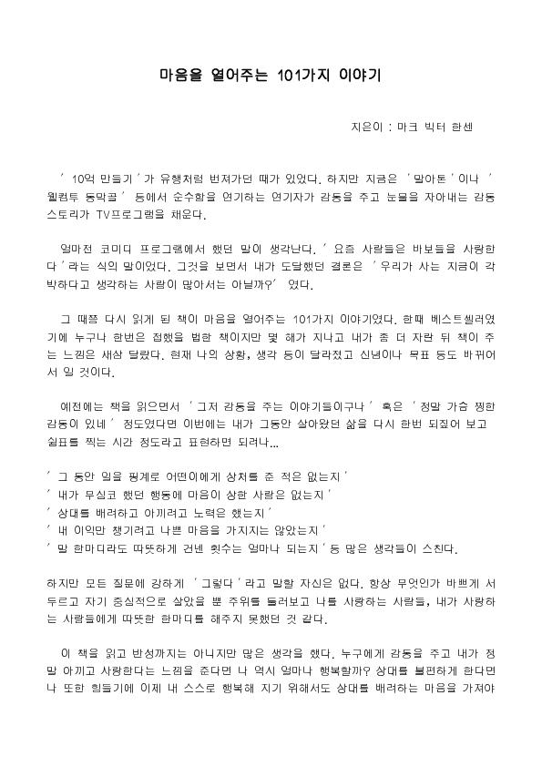 [µ¶Èݨ]¸¶À½À» ¿¾îÁÖ´Â 101°¡Áö À̾߱â_¸¶Å© ºòÅÍ ÇѼ¾ ÁöÀ½ |