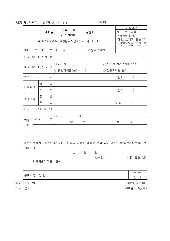 »ç¸³°úÇаü µî·Ï(º¯°æµî·Ï)½Åû¼(º°Áö Á¦1È£¼½Ä) |