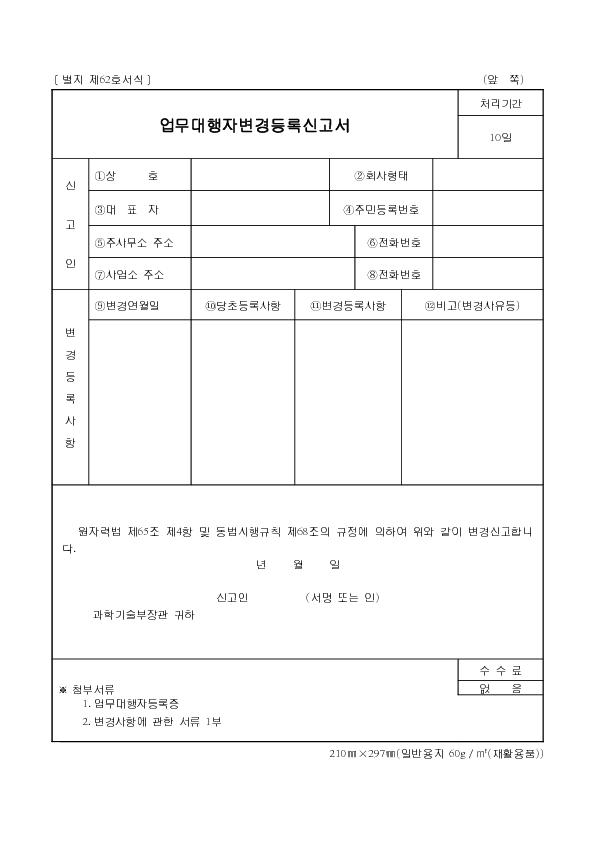 ¾÷¹«´ëÇàÀÚ º¯°æµî·Ï½Å°í¼­(º°Áö Á¦62È£¼­½Ä)