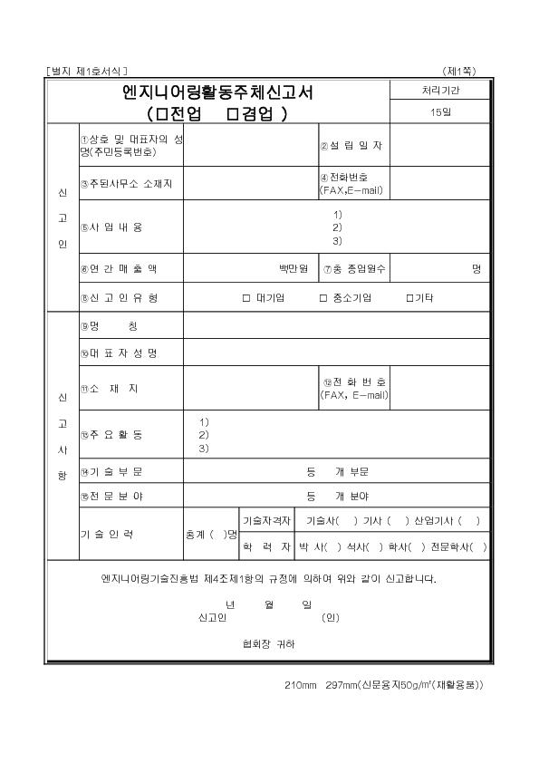 ¿£Áö´Ï¾î¸µ Ȱµ¿ ÁÖü ½Å°í¼(Àü¾÷, °â¾÷) |