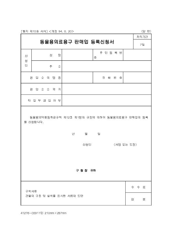 µ¿¹°¿ëÀÇ·á¿ë±¸ÆÇ¸Å¾÷µî·Ï½Åû¼ |