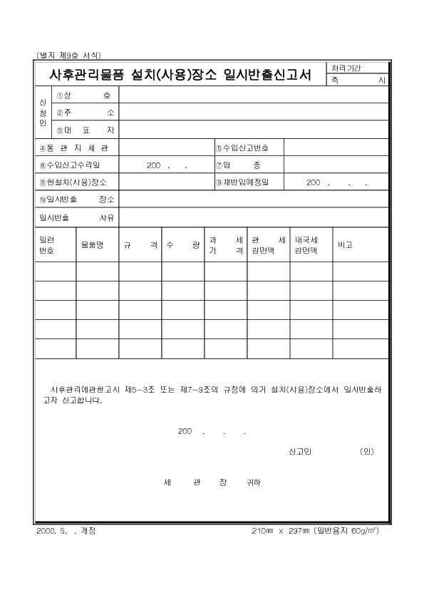 »çÈİü¸® ¹°Ç°¼³Ä¡ (»ç¿ë)Àå¼ÒÀϽà ¹ÝÃâ½Å°í¼ |