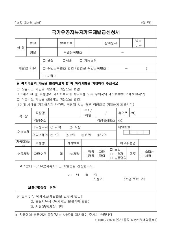 ±¹°¡À¯°øÀÚº¹ÁöÄ«µåÀç¹ß±Þ½Åû¼(º°Áö Á¦3È£) |
