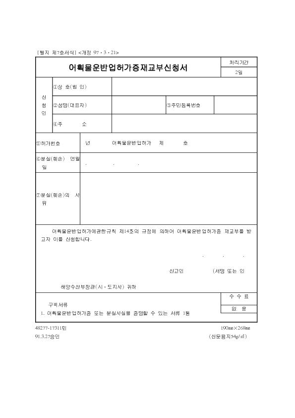 ¾îȹ¹°¿î¹Ý¾÷Çã°¡ÁõÀç±³ºÎ½Åû¼ |