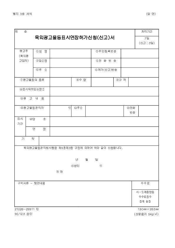 ¿Á¿Ü±¤°í¹°µîÇ¥½Ã¿¬ÀåÇã°¡½Åû¼­½Å°í¼­