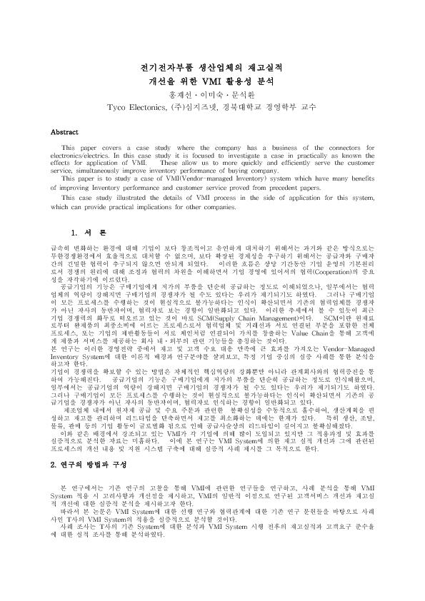 Àü±âÀüÀÚÁ¦Ç°»ý»ê¾÷üÀÇÀç°í½ÇÀû°³¼±À»À§ÇÑVMIȰ¿ë½ÇÀûºÐ¼® |
