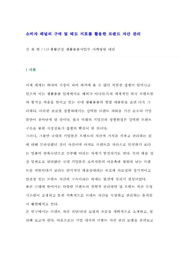 ¼ÒºñÀÚ ÆÐ³ÎÀÇ ±¸¸Å ¹× ŵµ ÁöÇ¥¸¦ Ȱ¿ëÇÑ ºê·£µå ÀÚ»ê °ü¸® |