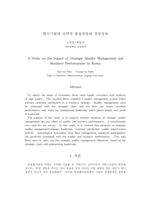 ¼Ò°³±Û Çѱ¹±â¾÷ÀÇÀü·«ÀûǰÁú°æ¿µ°ú°æ¿µ¼º°ú