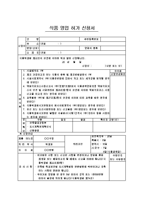 ½Äǰ ¿µ¾÷ Çã°¡ ½Åû¼ ¹®¼ÀÔ´Ï´Ù. ½Äǰ ¿µ¾÷ Çã°¡ ½Åû¼¿¡ ´ëÇÑ ³»¿ëÀÌ ÀÖ´Â ÀÏÁ¾ÀÇ ¹®¼ ¾ç½ÄÀÔ´Ï´Ù. |