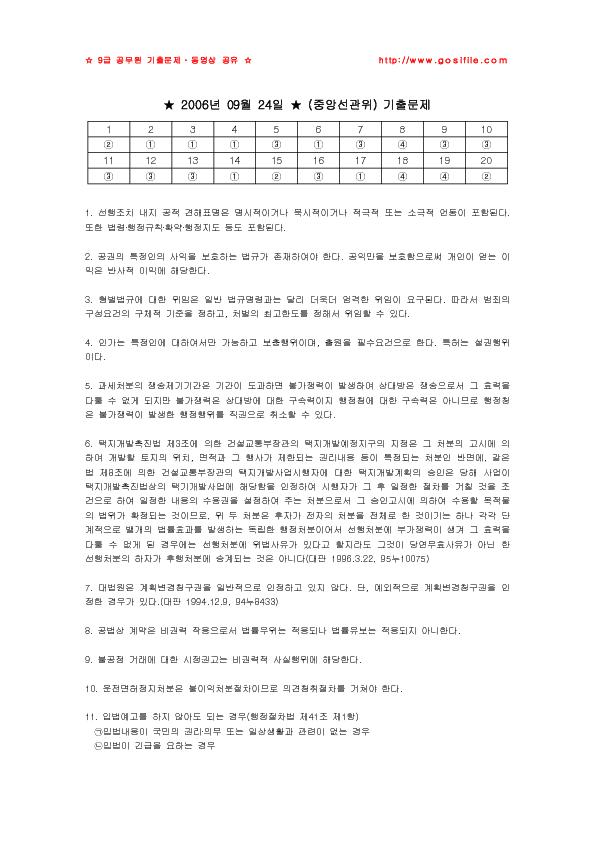 (9±Þ ÇàÁ¤¹ý) 2006³â 09¿ù 24ÀÏ Áß¾Ó¼±°üÀ§ ±âÃâ¹®Á¦ ÇØ¼³ |