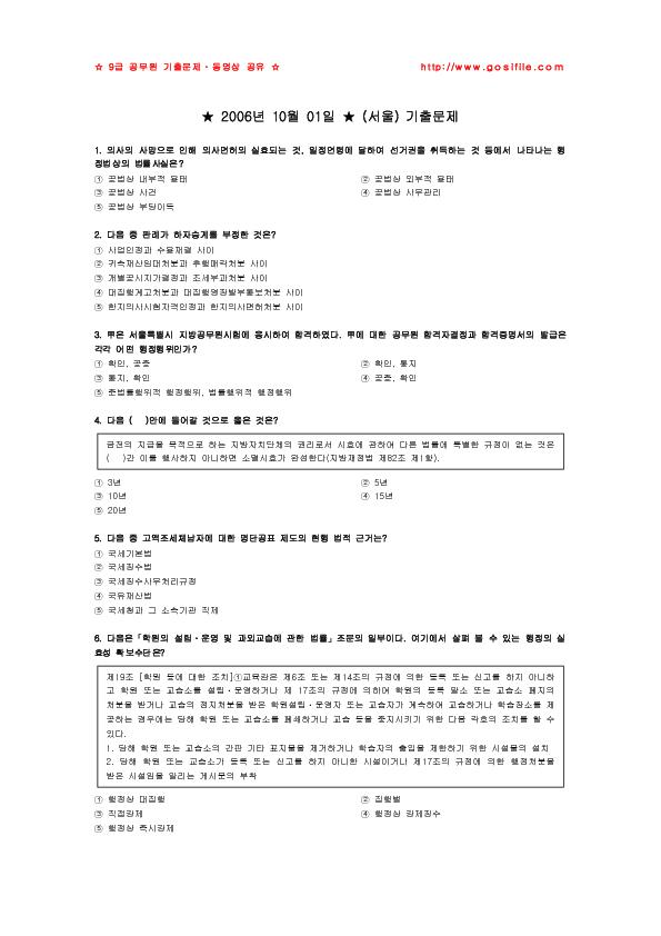 ÆÄÀϸí (9±Þ ÇàÁ¤¹ý) 2006³â 10¿ù 01ÀÏ ¼­¿ï ±âÃâ¹®Á¦.pdf °ü·Ã ºä¾î ´Ù¿î·Îµå